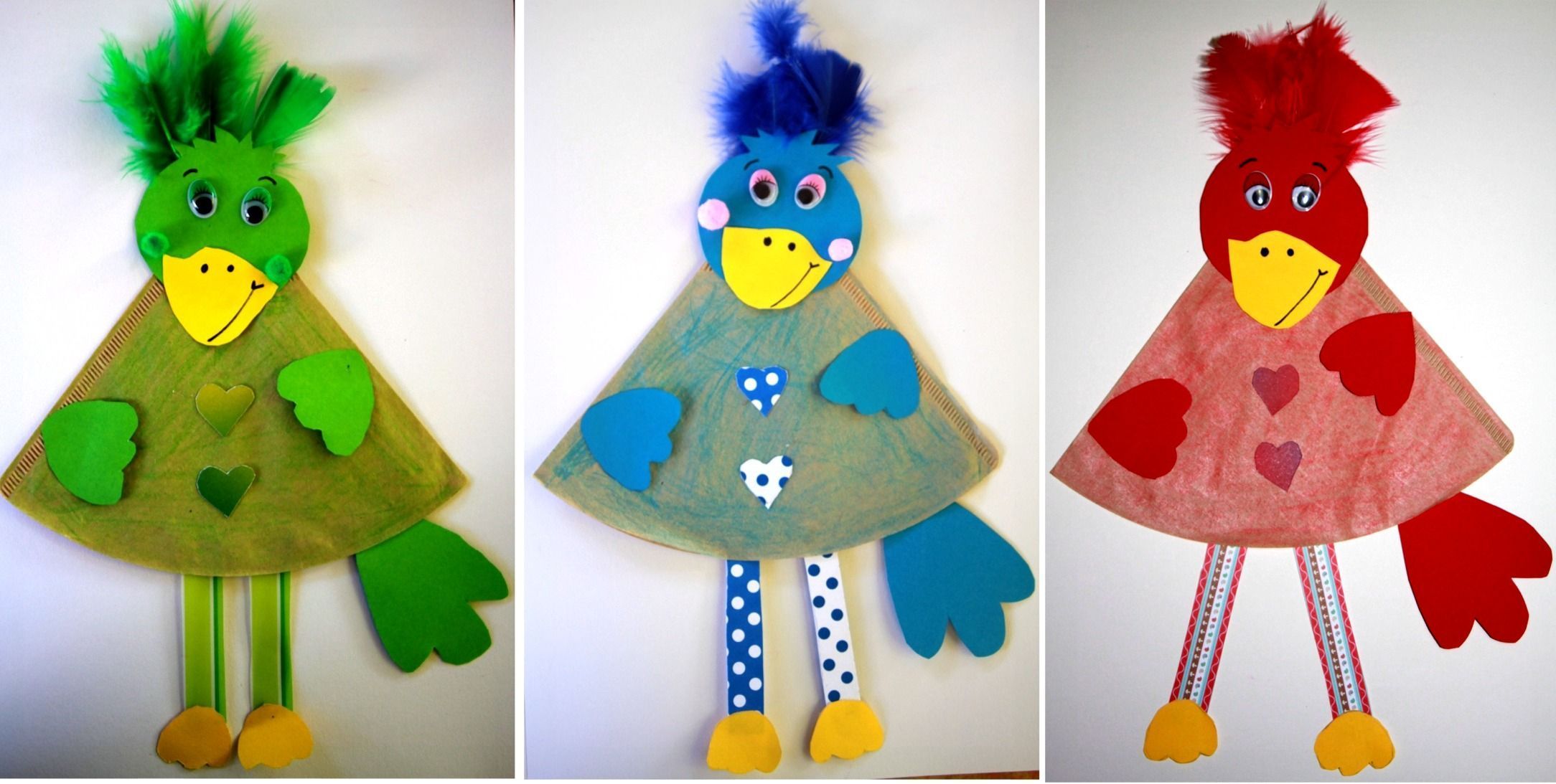 Les oiseaux des petits ronds pliés en deux coller un bec , un oeil mobile et une plume dessiner les pattes une fois l'oiseau coller sur l'arbre....